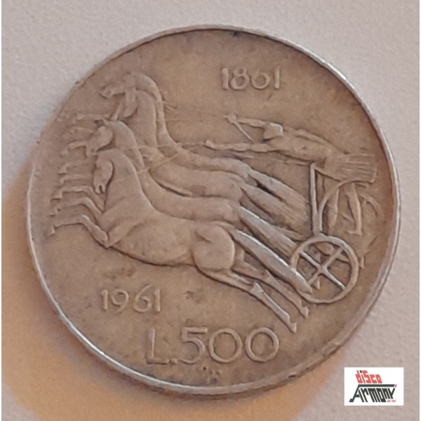 Moneta da Lire 500 - 1861- 1961 - REPUBBLICA ITALIANA (Centenario /Circolata)