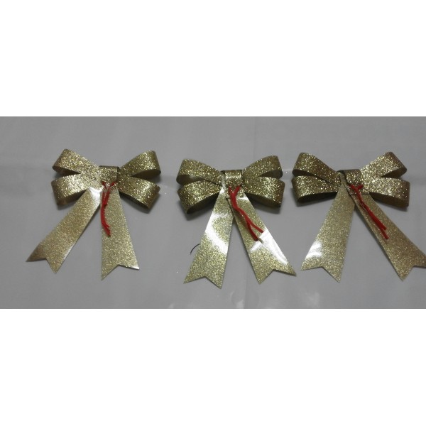 3 Fiocchi dorati con gancio per appenderli