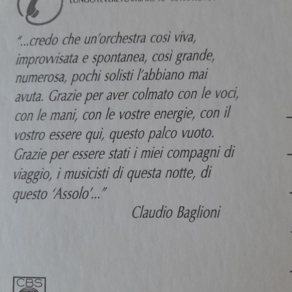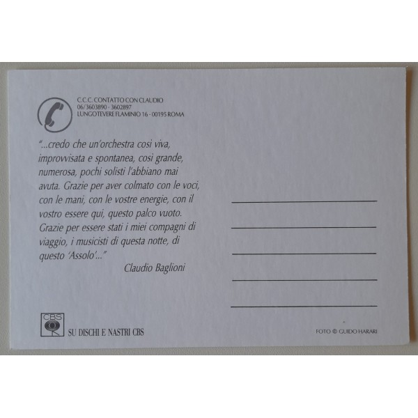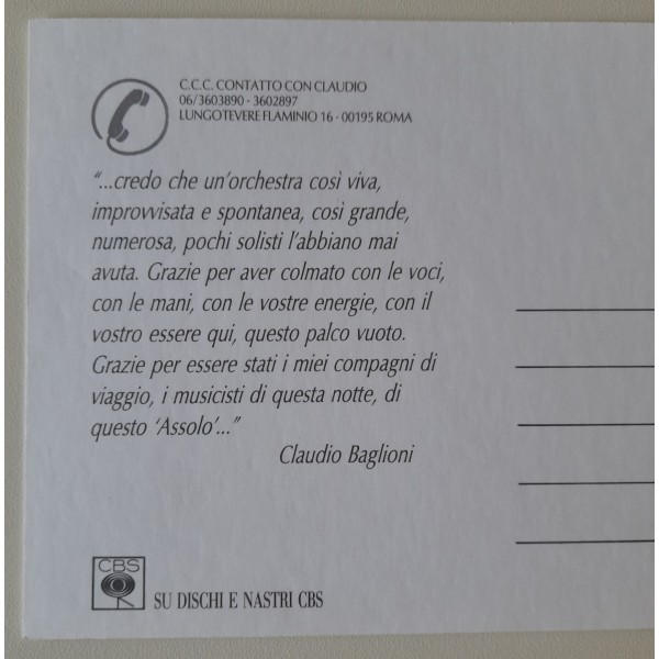 Cartolina promo album - ASSOLO - con citazione sul retro